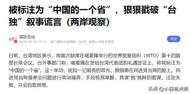 民进党这些年天天对内吹“台独国际化”说自己的“国际空间越来越大”其实全靠模糊表述撑着,现在规则被一条条写进系统,他们的那套说辞,自然也就不攻自破了。